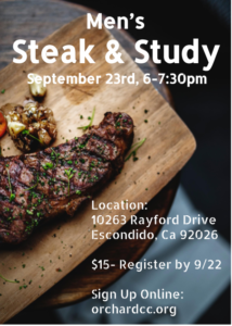 At the Orchard we want to see men rise up and become the people God wants them to be. The Steak and Study is one part of that. Hopefully, if we work together, we will cultivate an active and thriving Men’s Ministry organically. You are definitely part of that.